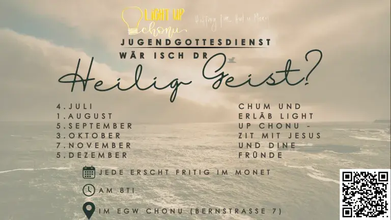 Die Events sind öffentlich und finden jeweils am 1. Freitag des Monats um 20:00 Uhr in den Räumen des EGW Konolfingen statt.